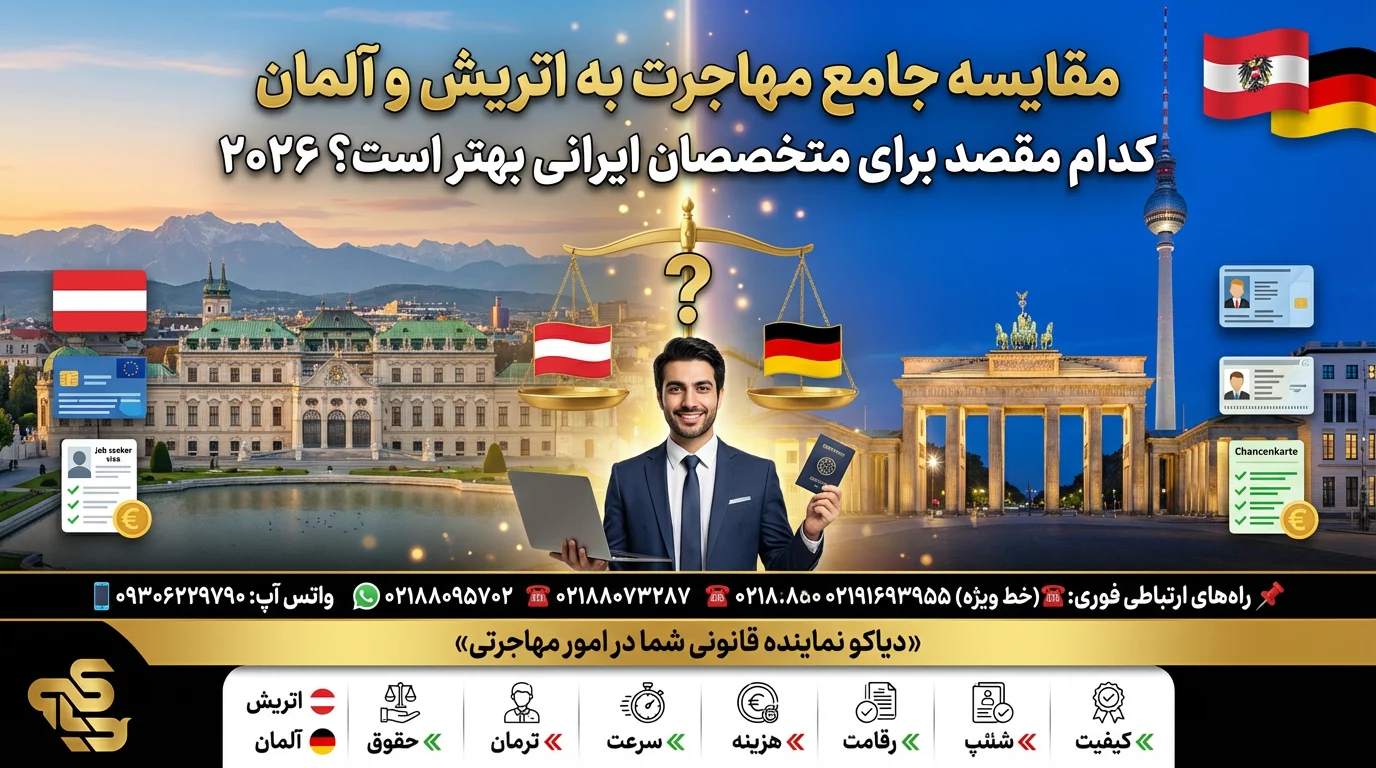 این مقاله جامع، بر اساس دادههای بهروز قوانین مهاجرتی (مانند کارت قرمز-سفید-قرمز اتریش و کارت آبی آلمان)، بازار کار ۲۰۲۶ و گزارشهای OECD، به عنوان راهنمای کامل مقایسه مهاجرت به آلمان و اتریش عمل میکند.