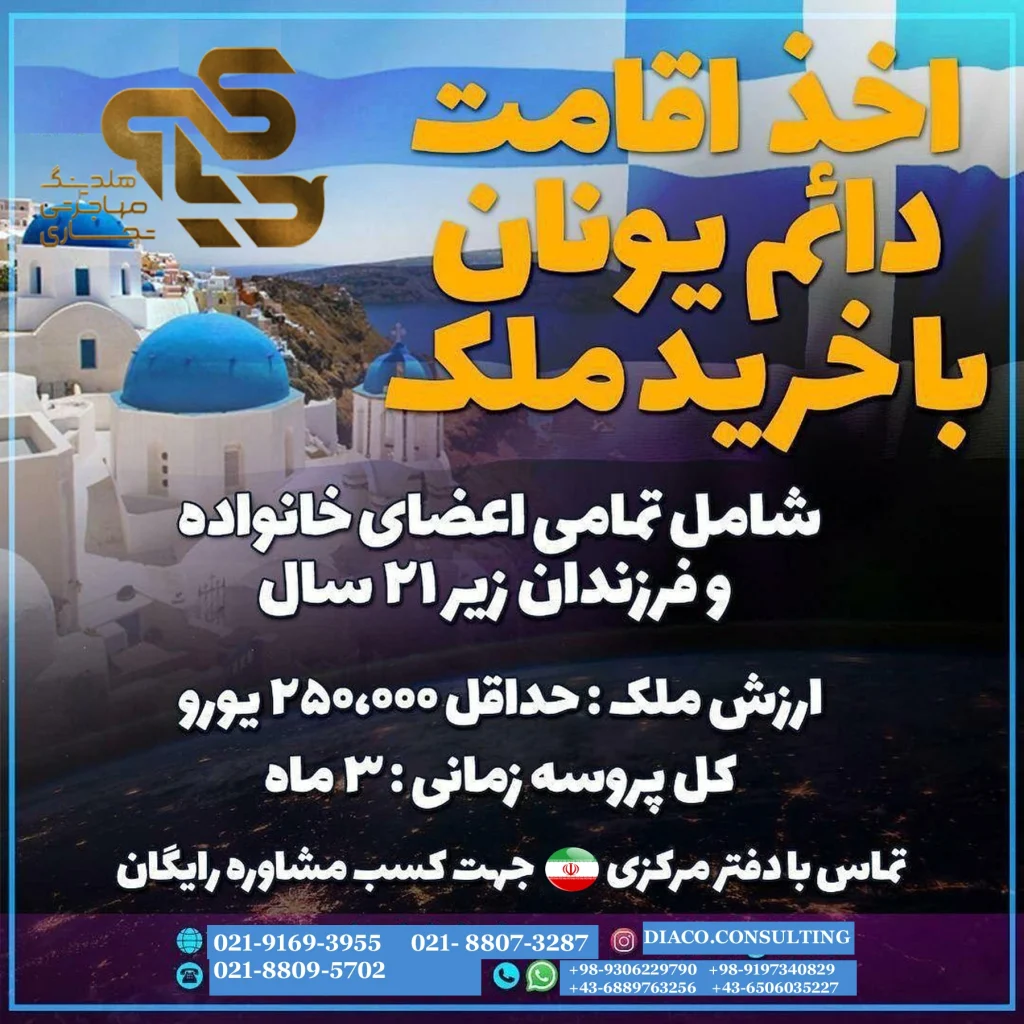 #ویزای_طلایی_یونان #GoldenVisa_یونان #خرید_ملک_یونان #اقامت_شینگن #مهاجرت_به_یونان #دیاکو